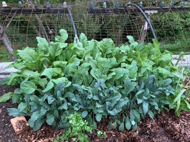 If you have problems getting your children or friends to try collard greens (picture above: kale, collards, turnip greens), this is a good recipe to introduce them into the wonderful world of cruciferous greens. We have had young, tender collard greens from our garden over the last few months. These are easy to grow especially in early Spring or Fall. If you grow them into the summer months they need to be sprayed every few weeks with a BT solution (Bacillus thurengenesis) which is a safe, organic way to kill cabbage moth worms which typically destroy cruciferous vegetables once summer temperatures kick in.